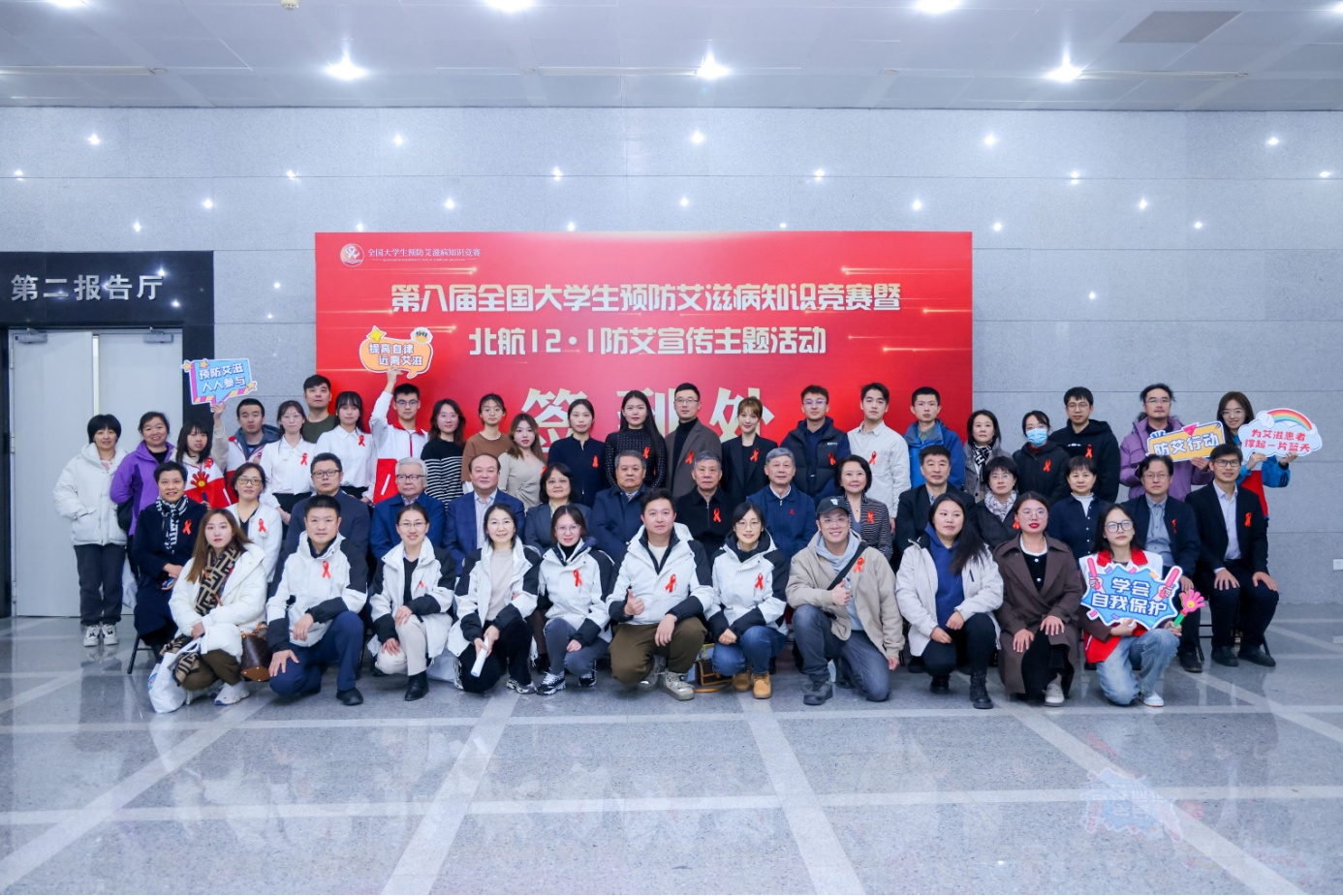 2023年11月23日,在第36个世界艾滋病日来临之际,为持续推进防艾宣传教育进校园工程,提高青年学生对艾滋病的正确认识及自我防护意识和能力,第八届全国大学生预防艾滋病知识竞赛暨北航12·1校园防艾宣传主题活动在北京航空航天大学新主楼第二报告厅举办。