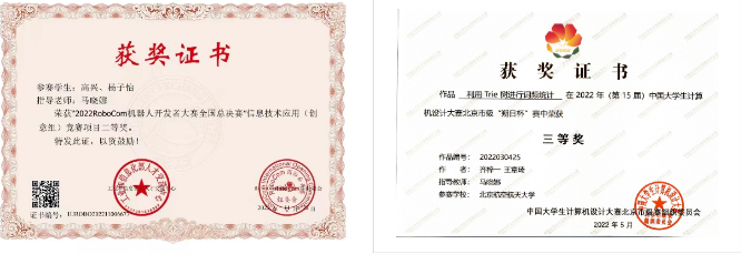 在“大创”比赛中,她指导学生连续4届获得大学生创新创业训练计划项目北京市立项、国家级立项。在“2022机器人开发者大赛全国总决赛”、“中国国际互联网+大赛”及“米兰设计周高校师生作品展”等多项比赛中,她指导学生累计获省部级以上奖20余项。