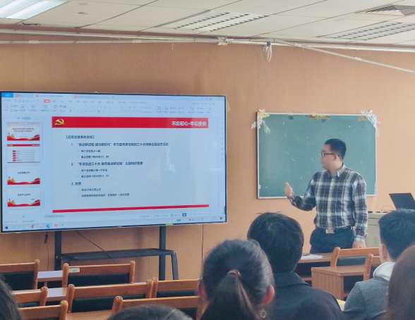 学院党委副书记贾子超对本学期主要任务和重点工作进行了总结安排,强调了学生党支部建设的重要性。他指出,学生党支部是党密切联系学生的桥梁和纽带,是引领学生刻苦学习、团结进步、健康成长的阵地,承担着重要的职责,肩负着重要的使命。并表示要以习近平新时代中国特色社会主义思想为指导,加强学生党支部建设,以确保学生党支部充分发挥基层党组织战斗堡垒作用。