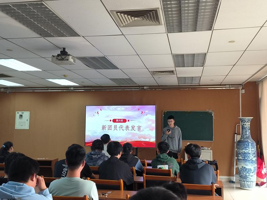 王章玮代表学院分团委,对新发展团员们表示祝贺,鼓励他们要坚守初心,坚守理想信念,时刻保持勤奋向上的精神。他强调青年人是国家和社会的未来,希望学生们能够积极参与团队活动,发扬团组织的精神,为校园发展助力。他指出,要不断提高自身素质,保持积极向上的心态,在共青团这个大家庭中找到自己的位置,展现自己的价值。