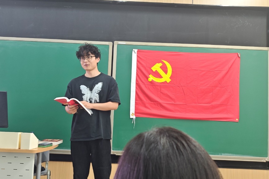 李雪静同志聚焦于《苦难辉煌》,结合书内中国共产党从艰难探索到走向胜利的历程,剖析革命先辈“不怕牺牲、英勇斗争”的精神内核。“从井冈山的星星之火到长征路上的生死考验,中国共产党在绝境中一次次破局,靠的是对理想的执着、对人民的责任。这种精神无论在哪个时代,都是我们面对困难时的底气。”她还结合自身求学经历,分享如何以先辈精神面对科研中的挫折,让大家深受启发。